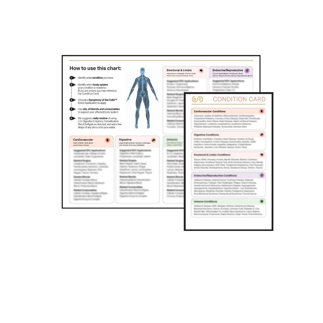 Symphony of the Cells™ is a collection of essential oil applications formulated by Boyd Truman to create harmony physically, emotionally, and spiritually within the body. Each application is specific to a system of the body, allowing for a focused approach to different ailments/conditions.